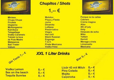 Long drinks: Tequila sunrise, sex on the beach, Mojito just 4 euro