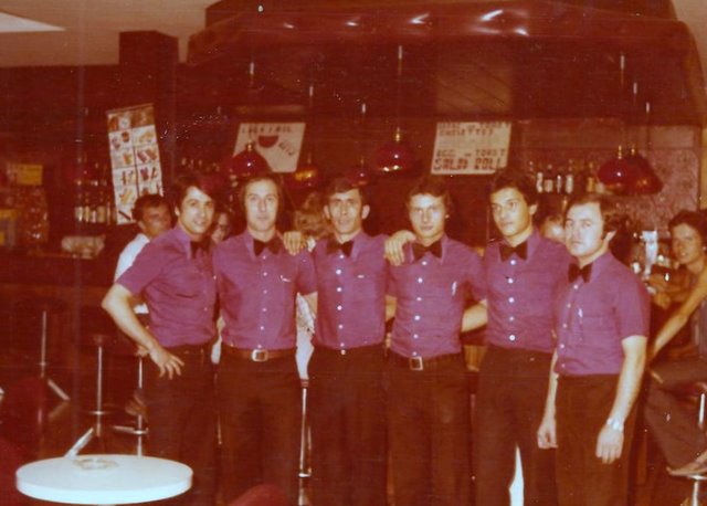 En el bar del hotel frigola un dia de party con unos clientes alemanes, ciudadin con la chica del medio y su minifalda jejeje