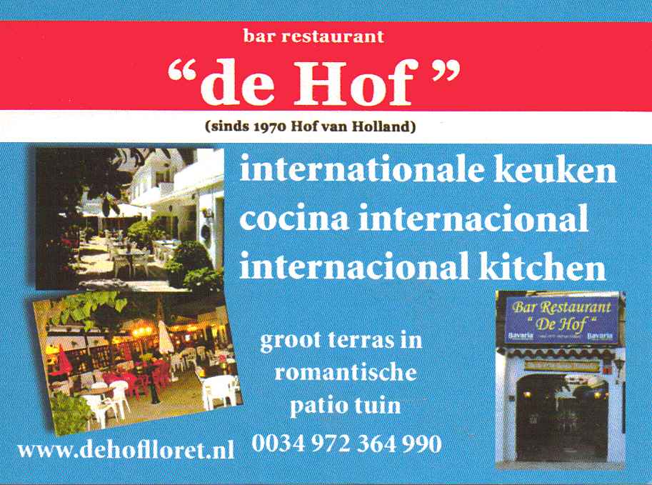The Dutch owners Nelrie and Jac established ''de hof'' in 1970 and their friendly service and high quality food have made it a firm favourite with holidaymakers and locals ever since, call into the Restaurant Hof Van Holland Lloret de mar its a treat!