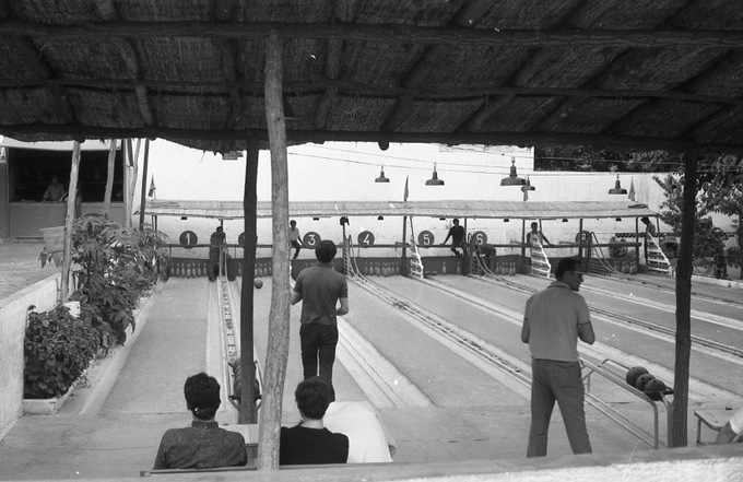 Lloret bowling alley (La Bolera) look at the boys at the end of the lanes, they had to jump down and stand up the pins, must have hated it when someone got a strike!!