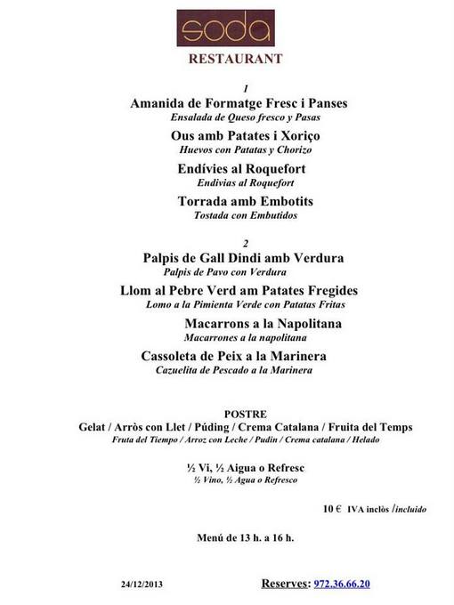 The menu displayed is an example of a daily menu served at Soda C/Grau Lloret de mar